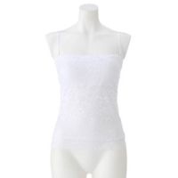 繊細なレースを使用した、切替えデザインの女性らしいベアトップ。上部内側にゴムを配しており、ストラップ無しでも着用できます。取り外せるカップ付きで、1枚で着られるのもうれしい。裏打ち部分には、肌触りのいい綿混素材を使用しています。※ご購入可能な色・サイズ・タイプは、”在庫・価格を一覧でチェックする”でご確認ください。