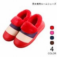 男女兼用 ルームシューズ 裏ボア PU 防水 メンズ レディース スリッパ 根付き 防寒 冬物 室内靴 裏起毛 くつ ボーダー柄 下着 靴下 部屋着