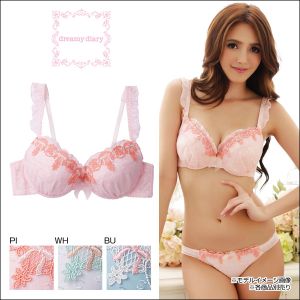 いつもより少しだけラグジュアリーな「ランジェリー」を・・・そんな乙女な大人のためのブランド、「dreamy diary」からお買い得なブラジャーが登場!シフォンとドットの組み合わせが愛らしいデザインの3/4カップブラジャー。上辺のケミカルレースがゴージャスな雰囲気を漂わせています。女の子の好き!をいっぱい詰め込んだデザインになっています。カップには取り外しできるパッド入りで、ボリューム調整が簡単にできます。ストラップは取り外しできるので、お手持ちのものに付け替えができ、おしゃれを楽しめます。カップサイドに伸びない生地を使用し、バストの横流れを防ぎます。数量限定のプチプライス商品!この機会にぜひご購入ください♪